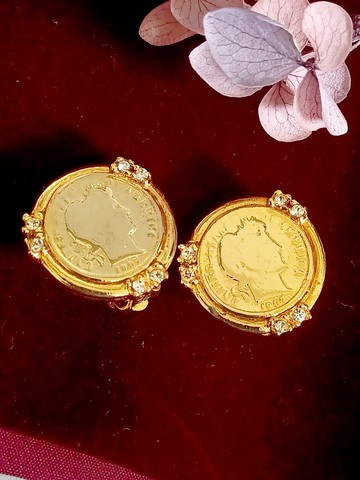 vintage jewelry Ellen Designs 仿羅馬金幣 夾式耳環