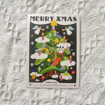 聖誕節手繪插畫萬用卡聖誕卡/明信片/卡片/插畫卡-狂歡聖誕樹