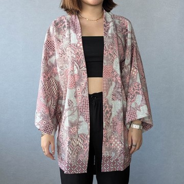 印尼蠟染輕薄涼爽和服罩衫 NAKURA - 粉紅 - NAK004