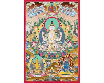 慈悲的象徵:觀世音菩薩代表純粹的慈愛,散發出和平與同理心。手繪傑作:每件作品都精雕細琢,充滿精美的細節與鮮明的色彩。冥想理想之選:增強專注與平靜,非常適合冥想和靈修空間。獨特的西藏藝術:獨一無二的創作,為任何空間帶來美感與靈感。意義非凡的禮物:為熱愛靈性藝術與慈悲之心的人提供的貼心禮物。規格:尺寸:76 x 50 公分由尼泊爾熟練的藝術家創作使用棉質畫布、天然石顏料和24克拉金製作適合冥想、瑜伽和家居裝飾框架:傳統綢緞可為您的唐卡畫作增添華麗裝飾提供各種顏色和品質選擇的絲綢綢緞綢緞價格從50美元起,根據質量和尺寸而異配送:享受免費配送預計在2至4個工作日內送達,並提供保險,讓您安心退貨政策:30個工作日內接受退貨店鋪訊息:"感謝您探索我們的Pinkoi商店!深入我們多樣化的唐卡收藏,發現精心創作的珍品。從精緻手工唐卡到受佛教啟發的藝術,每位顧客都能找到屬於自己的寶藏。您的支持對我們來說無比重要。我們隨時為您提供幫助—隨時向我們詢問任何問題。感謝您在我們旅程中的角色。探索我們的商店,發現您下一個珍愛的物品!"願一切眾生安樂!