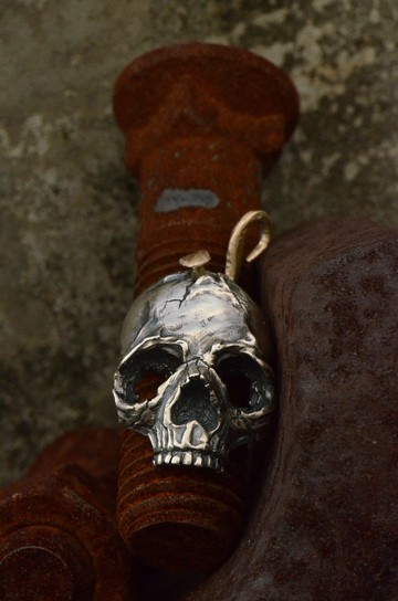 **NDSK3 標本骷髏墜飾**NDSK3 標本骷髏墜飾在設計上參考了標本的造型,把用釘子固定的這個概念延伸到了活動墜頭上,在兩件交界的位置設計了重複拔取過後造成的紋理,在骷髏本身的設計上採取相對來說更寫實一些的構圖,利用一些品牌特色跟新型態的思維邏輯,把傳統的骷髏造型再往新的風格裡前進一步。14K黃金+925銀(非電鍍金)每一個面都做了不同的手工處理, 男女皆宜.局部硫化處理本人原創設計, 純手工製造, 雷射雕刻Logo購買須知:所有商品皆採用訂購方式, 純手工製造需要一定製作時間.將於收到訂單後依順序製作 大約製作時間為14~24個工作天.可接受雷射雕字(價錢另計), 須提供內容以及字型, 如不提供自行將由設計師自行判斷.提供終生免費保養及一年內維修服務, 不包含人為破壞因素, 買方需自行負擔寄回之運費.此產品為客製化手工製造, 恕不接受任一退換貨原因, 若有任何疑慮請來信詢問,會在短時間回覆您飾品保養:配戴時請勿大力敲擊, 拉扯, 摩擦.硫化處理之飾品請勿使用清潔劑清洗, 泡澡, 溫泉時 請勿配戴.**標本的價值在於,留念或是炫耀**