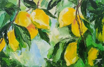 檸檬畫原創藝術檸檬樹畫油20*30cm