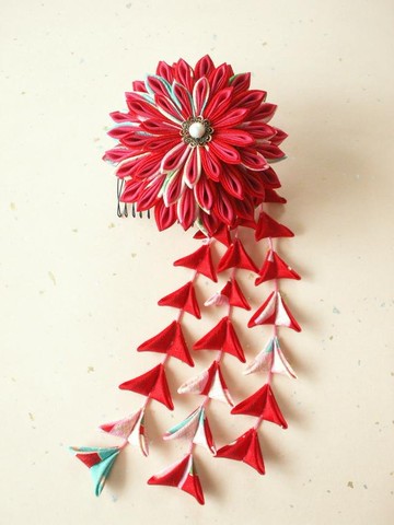 用舊佈製成的旋鈕作品 Kanzashi 非常適合成人儀式和慶祝活動♪