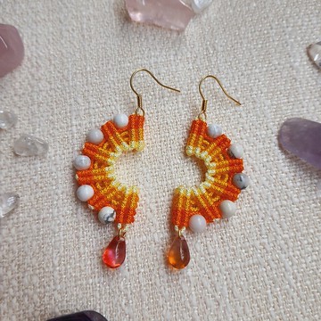 打結。Jaye's Macrame Studio的每件飾品皆是為純手工的編結作品橘黃色系芊綿線搭配天然白紋石,將半輪月亮戴在耳上|| 材質 ||✧芊棉線821號✧白紋石✧黃銅電鍍方形棒|| 尺寸 ||(不計耳勾) 長約 6 CM|| 保養及注意事項 ||✧尼龍線沾濕,可用衛生紙吸乾或風乾即可。金屬配件沾濕請用乾布擦拭乾淨避免發黑。黃銅鍍色配件不易氧化,平時不需保養,戴久了會緩慢褪色,逐漸回復到黃銅本身的顏色。✧耳環配戴以外的時間請將耳勾先擦拭乾淨,並放入夾鏈袋保存,以隔絕空氣中的水分✧手鍊都有註明最小和最大尺寸,例如13~22公分,可以自由調節大小。若尺寸有特殊需求請與設計師聯絡✧天然石帶有雲霧、冰裂、礦缺與瑕疵是正常現象,請確定能接受再訂購哦!✧圖片中的商品可能會因光線、電腦螢幕色差等不同因素而有差異,設計師拍照時已盡力調整成與原色相同✧如果該款式沒有您喜歡的顏色,可以與設計師聯絡,為您訂做您喜歡的色系喔✧若需改成耳夾或耳針,可在商品規格選項直接選擇即可✧復古壓紋耳鈎帶有古典感,但耳針稍粗,有些人可能會覺得耳洞被撐大,請斟酌再購買|| 包裝 ||每件飾品均附一收藏專用夾鏈袋|| 粉絲團、IG ||facebook:打結。Jaye's Macrame Studioinstagram:@macrame_jaye_knot裡面有一些有趣的創作過程及市集資訊不定期更新σ`∀´)σ