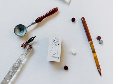 深藍花季女孩 木製印章