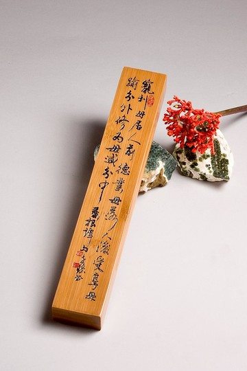 【產品名稱】典藏文鎮 【製成材質】孟宗層積竹材 【規格】28x4.5x3 cm 【簡介】竹製文鎮,案桌聖品,大師書以勵志佳言,送禮自用皆宜。 【附註說明】商品皆用天然竹材,竹節位置及顏色會略有差異。 【客製化】表面可刻LOGO、名字、墨寶等,是送禮的好選擇(版費另計)。註:客製化刻字內容請來信詳述,大量製作者,商品交期約一個月(或以上),恕無法接受急單。