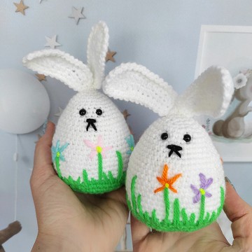 處理時間為 3-5 個工作日。20 – 50 天的過境郵件投遞。該套裝包括 2 隻兔子。雞蛋形式的兔子由低過敏性材料製成:壓克力紗線和填充物 – syntepon含耳朵的高度 – 15 厘米(5.9 英寸)