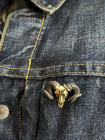 黃銅公羊頭骨胸針。