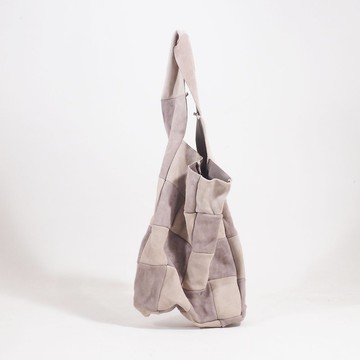 拼接皺褶包 #灰色 / 真皮 / 山羊革 / 雙面 / 手提包 / 側背包 / HB045
