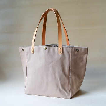 PinLe 日系無印風大容量多way手提托特帆布配真皮男女包-米白