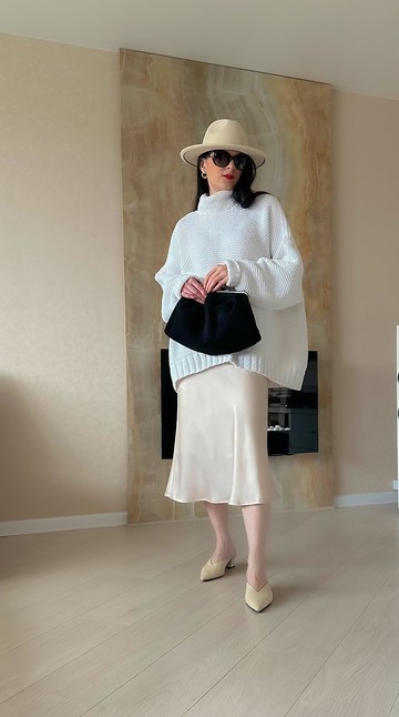 羅紋針織連帽毛衣,訂製商品。模特兒著用 XL 尺寸。顏色(如圖所示):白色。紗線成分:棉。領口類型:連帽領。袖子類型:寬袖、落肩。輪廓類型:寬鬆。保養方式。手洗,水溫 30 度。平鋪橫向晾乾。