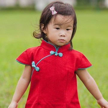 兒童旗袍 古風 冬季款 短袖素面款(紅色)
