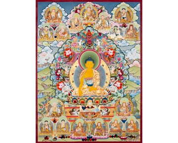 - **釋迦牟尼佛親自選擇**十六羅漢,請他們在彌勒佛出現之前保護佛法。- **他們發誓在佛陀般涅槃後**堅持弘揚教義。- **想像佛陀與十六羅漢**一起,會產生功德和智慧。- **在藏語中被稱為"Neten Chudrug"**,其中包括賓頭盧和那伽犀那等人物。- **向他們獻上祈禱**會帶來諸如消除障礙和確保長壽等利益。----------------------------------------------------------------------------------------規格:- 尺寸: 92 x 67 cm - 由尼泊爾熟練藝術家創作- 使用棉質帆布、天然石頭色彩和24K金製作- 適用於冥想、瑜伽和家居裝飾裝裱:- 傳統錦緞可以點綴唐卡畫作- 提供各種顏色和質量選擇的絲綢錦緞- 錦緞價格從$50起,取決於質量和尺寸交貨:- 享受免費送貨- 預計在2-4個工作日內送達,並投保以確保安全退貨政策:- 可在30個工作日內退貨店鋪留言:"感謝您探索我們的Pinkoi商店!探索我們多樣化的唐卡收藏,發現由專注創作的寶藏。從精心手工製作的唐卡到佛教藝術啟發的作品,應有盡有。您的支持對我們來說是無價的。我們隨時待命解答任何問題。感謝您在我們的旅程中扮演的角色。探索我們的商店,發現您的下一件珍藏!"願一切眾生都幸福