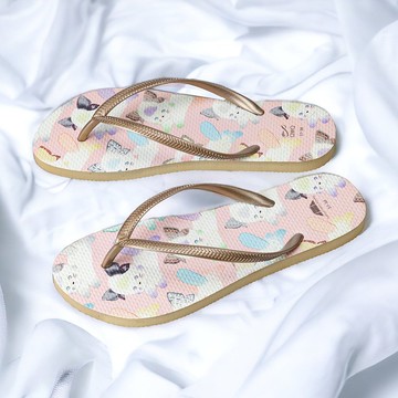女款防滑夾腳拖鞋 灣A麻吉人字拖 防水環保材質 粉金 -濃情心意-