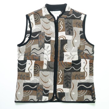 90s 美國製 植物圖騰拉鍊式花毯背心 古著背心