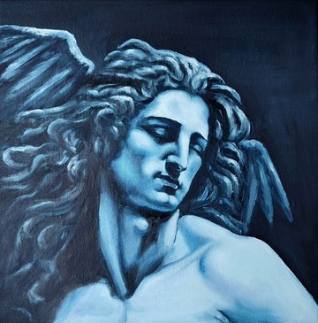 花花圈的女孩。原創藝術。厚塗油畫。