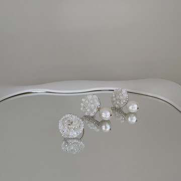 閃亮亮片・棉珍珠耳環(可拆) - 手縫刺繡耳環
