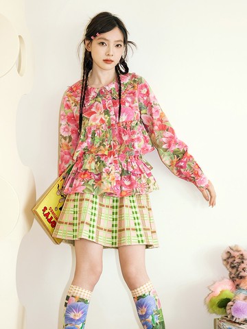 展示品 花卉格紋荷葉邊裙 秋冬裙傘裙