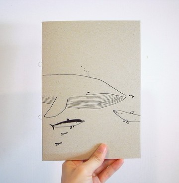 動物與牠的詩23/ 座頭鯨/ 手繪 /卡片 明信片