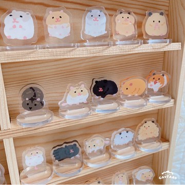 每款長邊約3cm,雙面都有保護膜可撕掉,不同品種花色的小倉鼠立牌