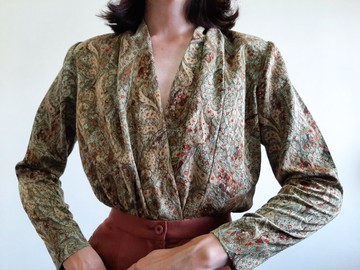 復古 20 世紀 80 年代花卉佩斯利襯衫 雙排扣上衣 墊肩