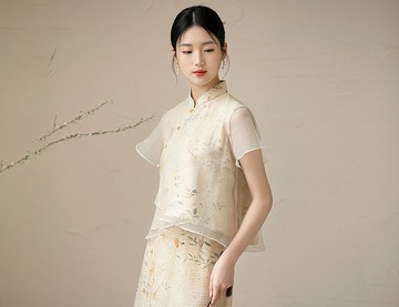 新中式中國風 斜襟立體浮雕感知性溫婉 上衣/半裙