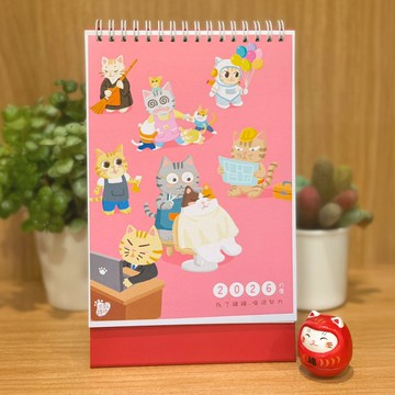 《2026年為了罐罐喵很努力月曆》2026年十二隻不同職業的貓咪,為了賺取買罐錢努力工作。十二個月的職場貓咪,記錄著各貓咪的職場奮鬥歷程。一月-《社畜貓咪上班族》二月-《施展魔法中的貓咪女僕 》三月-《幼稚園的貓咪教師》四月-《Cat Walk中的貓咪模特》五月-《遊樂場的吉祥物》六月-《工地上的貓工程師》七月-《蘭嶼的捕魚貓》八月-《上海理髮店的貓師傅》九月-《貼窗貼的貓工》十月-《寺院的貓主持人》十一月-《做速遞員的黑貓》十二月-《木天蓼派對上的DJ 貓咪》