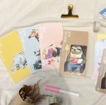 筆記本內頁:此系列筆記本內頁為全空白日本巴川紙,鋼筆書寫下不會暈染或透到下一頁去,一般原子筆亦皆可使用。書本封面插畫:是以「現在,我不想動」系列創作中的動物為主題。有:1.長頸鹿喝飲料 2.樹懶吃爆米花 3.大象滑平板 4.魚干食蟻獸【規格】*紙質:封面瑞典萊卡奇美紙(上霧膜可防潑水)內頁樹懶款內頁為68磅巴川紙,共80頁/ 其餘三款內頁為52磅,共96頁*尺寸約10.5x19公分,也可以放入TN的皮套裡喔~【產地】台灣設計 台灣製造鋼筆試寫如下:https://c1.staticflickr.com/5/4162/34191777001_d984835f50_c.jpg背面只有大象有圖案喔XDhttps://c1.staticflickr.com/3/2825/33481057094_ec4be05e56_b.jpg產地/製造方式台灣