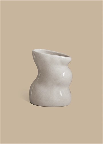空氣選物 不規則素燒陶瓷花瓶 米色 13.6 x 11.8 x 4cm