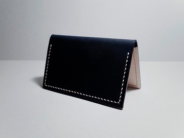 別於以往的特選牛革手工一針一線縫製設計、打版、成型充滿了手作的溫度不僅要求視覺美觀也著重日常實用性低調卻令人著迷的魅力。[ **材質** ]義大利植鞣革、臺灣製麻線[ **關於手縫** ]使用雙針馬鞍縫法,麻線互相交錯,增添耐用度、牢固度與獨特性。手縫的強度遠較於機器車縫堅韌,因線的勾勒方式不同,若不慎遇斷線情形,手縫不會像機縫一拉就會全開崩散。一個手縫皮件的製作時間,概略等同於十個以上的機縫皮件。[ **商品規格** ]尺寸:長 11.2 cm x 寬 7 cm▸ 約可放置 5 ~ 7 張卡片或 10 ~ 14 張名片。[ **客製化內容** ]1. 刻字服務提供單處壓印__免費10字元__,超過需酌收費用,https://www.pinkoi.com/product/AY4hj9ks (請點此加購)。https://live.staticflickr.com/65535/50354862531_c2425e0e4c_k.jpg▸ 推薦壓印位置:正面右下角、內部右下角。▸ 字型F屬於草寫字體,字母轉彎與勾勒處呈現較細淺的流線感痕跡。https://live.staticflickr.com/65535/50354159313_b9724c6b96_k.jpghttps://live.staticflickr.com/65535/51134465785_703d7244c8_k.jpg▸ 因款式眾多,提供編號時建議簡述圖案,例如:壓印 67 號的彩虹。▸ https://www.pinkoi.com/product/WZudGcvT (觀看更多圖案款式)2. 麻線顏色https://live.staticflickr.com/65535/53172507930_b19a529f03_k.jpg▸ https://www.pinkoi.com/product/8M6r3yzz (觀看色彩放大圖) 3. 皮革顏色https://live.staticflickr.com/65535/54085754073_f6b3518b09_k.jpg▸ 商品圖為霧黑;內部固定為自然色。[ **客製範例** ]https://live.staticflickr.com/65535/50354868096_97652a0081_k.jpg請將下列客製內容填寫於訂單備註欄裡(如上圖),成立訂單後將會與您作核對,為加快製作流程,請多加留意後續的確認訊息喔!:)1. 單處壓印字2. 字型選擇3. 壓印位置4. 麻線顏色[ **加購區** ]▸ https://www.pinkoi.com/product/85XK8LkF (急件專區) ▸ https://www.pinkoi.com/product/QWvLDTrc (燙金服務)▸ https://www.pinkoi.com/product/4mxtYgnD (皮革保養油)▸ https://www.pinkoi.com/product/KrRWhJQk (提袋) 為減量環保,使用密封式包裝袋,如需送禮前觀看實品請先告知,將為您預留黏膠,再簡易黏合即可;若需免費盒包裝請備註。[ **相關商品** ]▸ https://www.pinkoi.com/product/J5CQnufH (圓弧名片夾)※ **注意事項**:▸ 光照及電腦螢幕色差關係,可能導致些許色差發生,實際顏色依實品為主。▸ 皮革為天然產物皆均有獨特性,可能存在輕微的自然原皮傷痕、褶皺紋理。