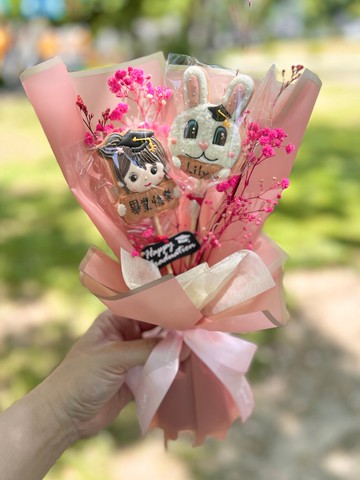 畢業糖霜餅乾花束—畢業女孩+畢業兔2片糖霜餅乾 低糖無香