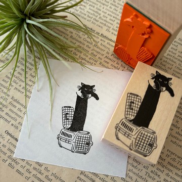 黑貓被主人從外出提籠裡抱了出來。是無力感、身體沉重,還是對主人的依賴呢?牠的身體到底能伸得多長呢。最讓人印象深刻的就是牠那長長的身體和任人擺佈的表情。無論是蓋在手帳上,或是與你現有的印章搭配使用,製作成訊息卡片,發揮你對貓咪的無限創意,盡情享受這份樂趣吧。如果用你有的色鉛筆或彩色筆塗上貓咪的眼睛,會變得更加可愛喔 ♪這款印章有較大的黑色貓咪實心區塊。為了完美呈現貓咪的輪廓,建議使用平滑、少有紋路的紙張。黑貓系列印章有各式款式,正在陸續推出中。請務必參考看看。《尺寸》印面:縦 2.5 × 橫 3.5 公分《材質》印面:橡膠,木頭:楓木《注意事項》・雖然是耐用的橡膠材質,但使用後請務必清潔印面,避免墨水乾涸,建議使用面紙或軟橡皮擦等工具清理後收納。・著作權並未放棄。請勿轉售本作品,或販售仿冒設計(無論全部或部分)的商品。