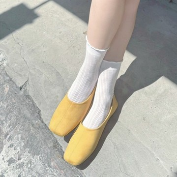復古方頭設計搭配亮眼黃色,兼具文青氣質與可愛俏皮。。鞋跟高度:1cm鞋面:絨布+PU鞋墊:超纖鞋墊鞋底:防滑橡膠底此款版型:略偏小【預購7-21天不含假日】