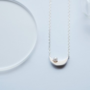 Moon & pearl necklace側邊懸掛的彎月造型項鍊。簡約的彎月輪廓,點綴著小巧的珍珠,增添一抹低調的亮點。儘管尺寸精緻,卻能在頸間展現出恰到好處的存在感。____________________________________[商品資訊]材質:925銀・淡水珍珠長 x 寬:約 5mm x 12mm厚度:約 2mm鍊長:約 420mm____________________________________________________________________- 附贈木製珠寶盒。※ 盒裝設計可能隨時變動,恕不另行通知。敬請見諒。