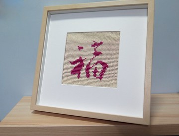 2023年全新作品,書法賀語框架。賀語可以掛牆或放在檯上作擺設用。底色用左混色金銀線,所以實物係燈光之下會有閃動既效果,而主色則用左桃紅色線。由於臨近新年,所以今年第一個作品設計左呢款福字作大家送福或放在家中作擺設。如果主色如果唔要桃紅色可以轉為傳統既黑色字。內框尺寸:12 x 12cm外框尺寸:24.5 x 24.5cm