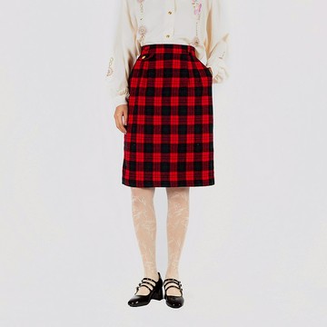 【蛋植物古着】榭寄生格紋毛料高腰古著裙