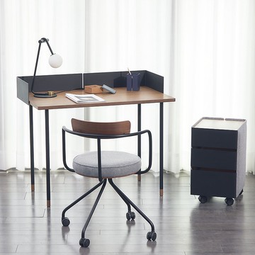 camino | BUENA 極簡滾輪書桌椅 (綠+原木/煙燻木+黑) 二色 - 自然木X清新綠