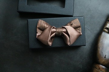 香槟金拼接龙纹八字结领结绅士风蝴蝶结