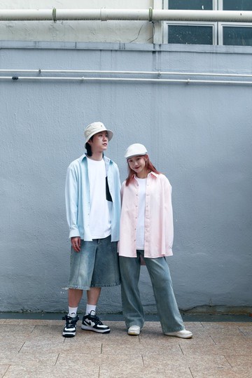 阿美橫町棉麻寬鬆薄襯衫 - 2色 - 直紫紫