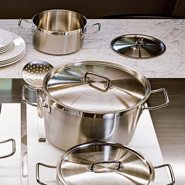 義大利Sambonet │Professionale‧不鏽鋼雙耳湯鍋附蓋‧20cm