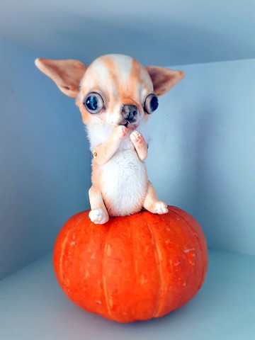 可愛的桃紅吉娃娃🧸槍口和爪子由聚合物粘土手工製成。人造毛皮縫製尺寸:約 10 厘米或 4 英寸可動爪子免費送貨🚚定做🙌親自為您製作自己的作品🎁