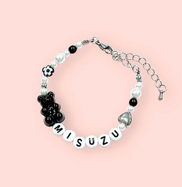 客制化 英文字母 黑色小熊 珍珠手鍊