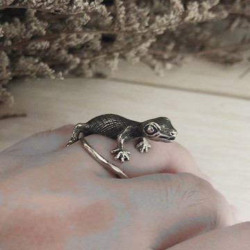 壁虎純銀戒指可愛動物女人禮物珠寶波西米亞風蜥蜴bugbear