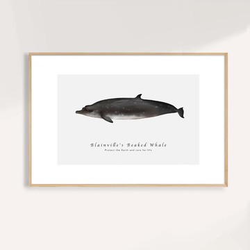 柏氏中喙鯨 Blainville's Beaked Whale / 海洋動物插畫掛畫