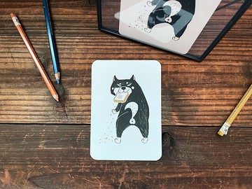 喜歡柴犬,也愛吃麵包,於是預設了這個故事。一隻貪吃的狗,趁著主人不注意時偷了一片吐司,當被主人發現時,只是邊跑邊回頭的賊笑,彷彿在說:「 嘿嘿!我要來享用了。」 **材質:霜白紙205g ** **尺寸:10.5x14.8cm **▶ 背面小圖:正要偷吐司的當下!🍞🍞 ✧ https://live.staticflickr.com/65535/51308324536_e85cc0a4c4_z.jpg