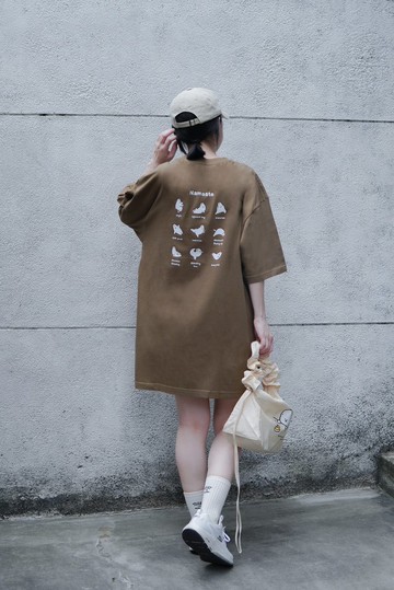 ★產地/製造:台灣★材質:純棉★版型:中性版型、女孩穿起來像oversize洋裝感,男女皆可穿,慵懶感。★雙面圖案設計:前面小圖案低調有趣,後面大圖案活潑豐富,麻糬兔超軟Q陪你做運動~★顏色:有點綠的咖