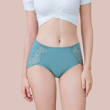 Clany可蘭霓 抑菌竹炭涼感蕾絲高腰 L-Q/2XL內褲 古典綠 2215-85