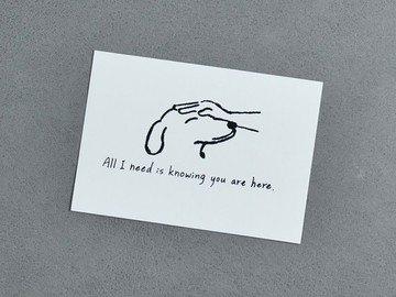 ※手工印製,每張明信片上墨度都不完全一樣。|知道你在這裡就夠了|All I need is knowing you are here.對狗狗來說,牠所需要的,就只是知道主人會在牠身邊。主人的同在就足以讓牠感到滿足,並且牠能夠因著這份關係而勇敢。在與主人的關係裡,牠對主人有著堅定的愛與忠心。我們跟神的關係也是如此單純,神的同在使我們擁有完全的滿足;神的愛使我們變得堅強與勇敢。我們與神之間的關係可以是如此堅定且永不改變。|創作者:Kai手工絹印明信片尺寸|10.5 x 14.85 cm材質|紙包裝|附透明塑膠袋、理念卡