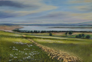 日出田野奶薊原創水彩畫風景牆藝術