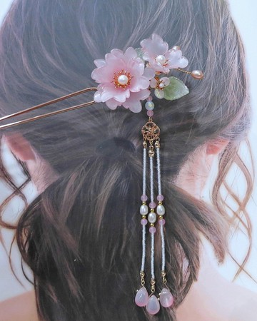 【💗這一款可做左右對稱的對釵或對夾,左款請參考最後兩張圖】圖片可能有放大效果,請務必參考尺寸說明.謝謝琉璃花樣長度約7.8cm流蘇長約15.2cm(可拆下)簪花材料:琉璃花瓣、琉璃葉、捷克蝕刻鍍彩花瓣、淡水珍珠流蘇材料:玉髓珠、日本米珠、琉璃水滴珠、捷克蝕刻鍍彩珠❤️這一款髮飾花朵為銅線和纏花線綁繞,花朵方向可微調盤髮請勿壓到簪花盤髮請勿壓到簪花盤髮請勿壓到簪花很重要!!這系列都是銅線纏繞製作再輔以膠水固定牢固性很好,但也經不起盤髮扭轉的力道請盤髮時不要壓到簪花或做好髮型再以髮簪裝飾天然的玉石不會有兩個一模一樣的,顏色會微有誤差而且天然的玉石或水晶可能有雲霧、冰裂紋、小黑點等...請欣賞大自然賦予天然石的美,這非瑕疵喔,天然淡水真珠每顆形狀稍有不同不是正圓形所有金屬皆為保色銅鍍18K金色或24K金色,這兩種的顏色會微有不同,一件髮飾成品的金屬小配件太多無法一一贅述,但即便是保色處理效果再好的金屬佩帶久了也會因使用習慣和保存條件的不同(如:汗水.皮脂.空氣氧化...等)而有不同程度的氧化變色,所以使用後請用乾淨乾燥的布或衛生紙擦拭,再收藏於密封袋或夾鏈袋(出貨會附贈)中收藏才可常保如新注意事項~1.琉璃花髮飾畢竟不像蕾絲緞帶那樣輕盈,會有一定的分量,所以須先做好造型或綁髮再加以裝飾,不限長短髮,不一定要綁多少,主要是讓髮飾在髮上有支撐點不會滑下。請知悉2.每台螢幕顯色不同,多少會有色差3.手工製作,完成品平放丈量,尺寸多少會有些許誤差4.銅線纏繞並輔以膠水柱固定製作,可能會看到纏繞的銅線或微溢出不明顯的膠水5.手工綁花繞線製作,每件作品可能微有差異,無法達到完全一樣6.銅簪銅釵等,因工廠都是大量製作出貨不可能一枝一支包裝出貨給中盤,會挑過再製作,但可能會有輕微刮痕或電鍍痕跡關於上述很介意者還請勿下單,避免糾紛.謝謝若有任何問題都歡迎提出